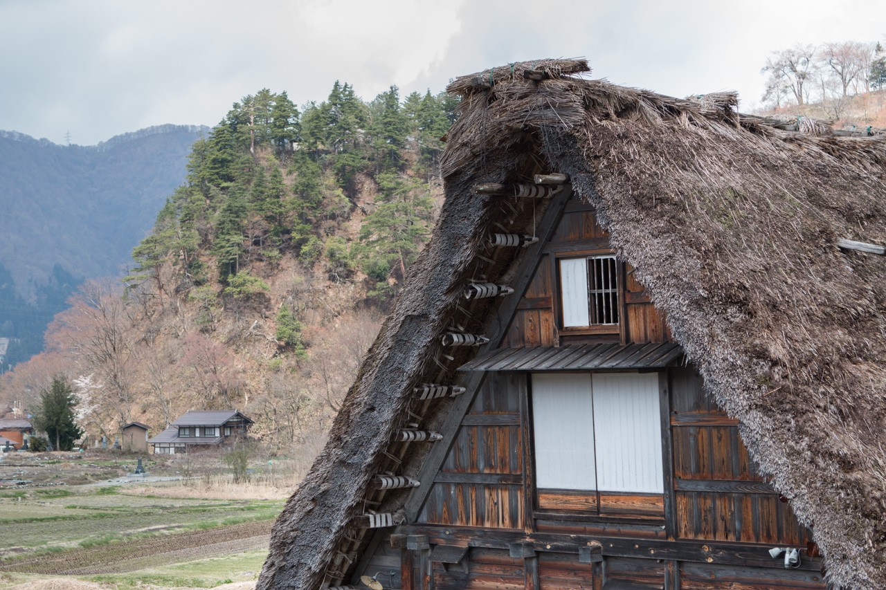 La neige des montagnes environnantes nous avait mis la puce à l’oreille mais ça caille sévère: 4°C!! On ne se démonte pas et on grimpe vers le point d’observation (photo 1). On poursuit en se baladant dans le village et en visitant l’intérieur d’une des maisons (la charpente en photo 5, une porte décorée en photo 6) Bref un très joli petit village qui contraste avec l’agitation des grandes villes japonaises.