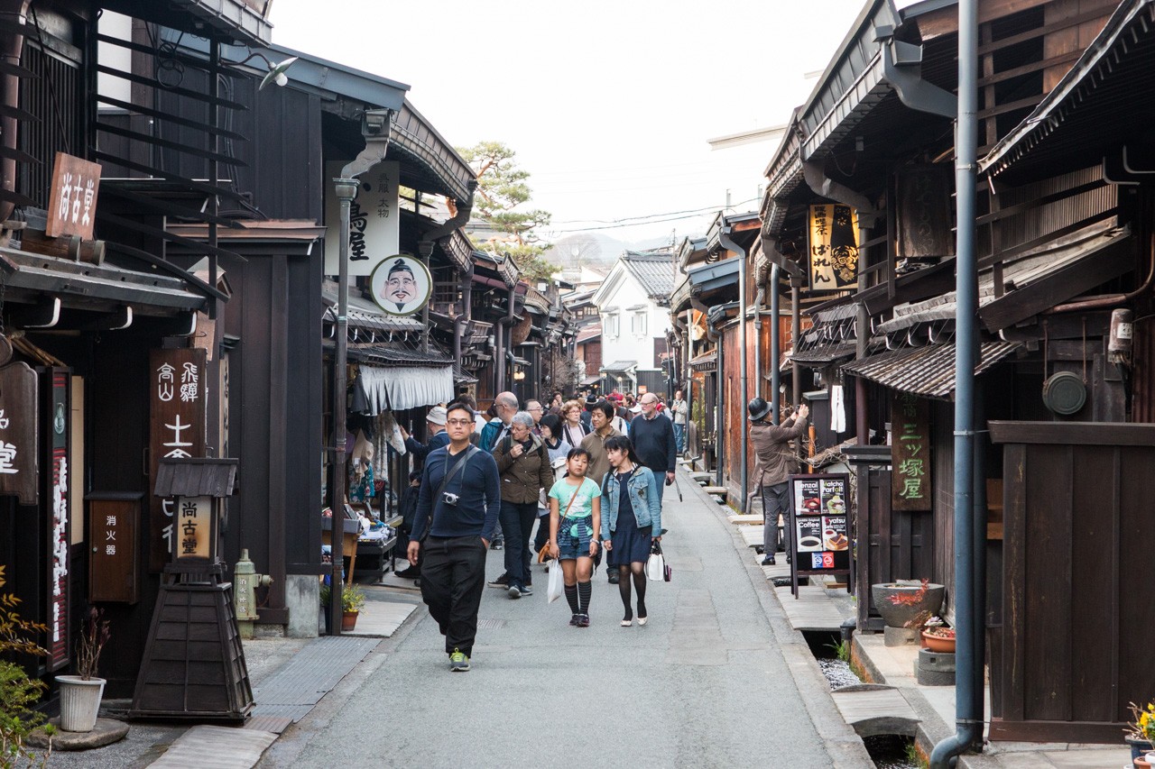 C’est après cinq heures de trajet réparties sur trois trains différents que nous arrivons dans la petite ville de Takayama réputée notamment pour son vieux quartier préservé (photo 1) où on y trouve principalement de petites boutiques & restos (photo 2) ainsi que des brasseries de saké (photos 3 & 4).